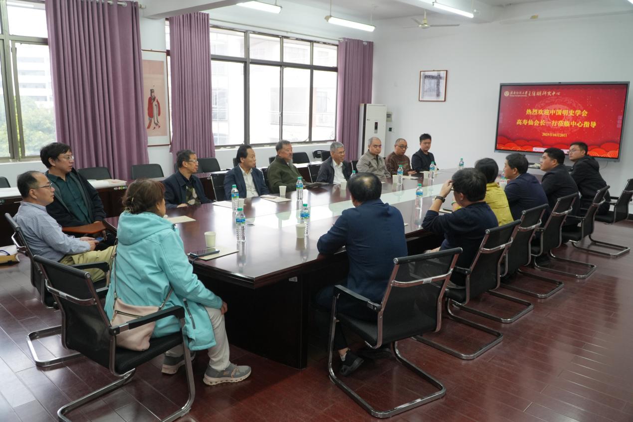 10月20日下午,中国明史学会会长高寿仙,首席顾问毛佩琦,副会长兼秘书长张宪博,副会长张金奎、高春平,中国明史学会理事、复旦大学教授冯贤亮等莅临学校历史文化与旅游学院考察指导。学校党委常委、宣传部长叶云明,历史文化与旅游学院负责同志及部分教师参与相关活动。